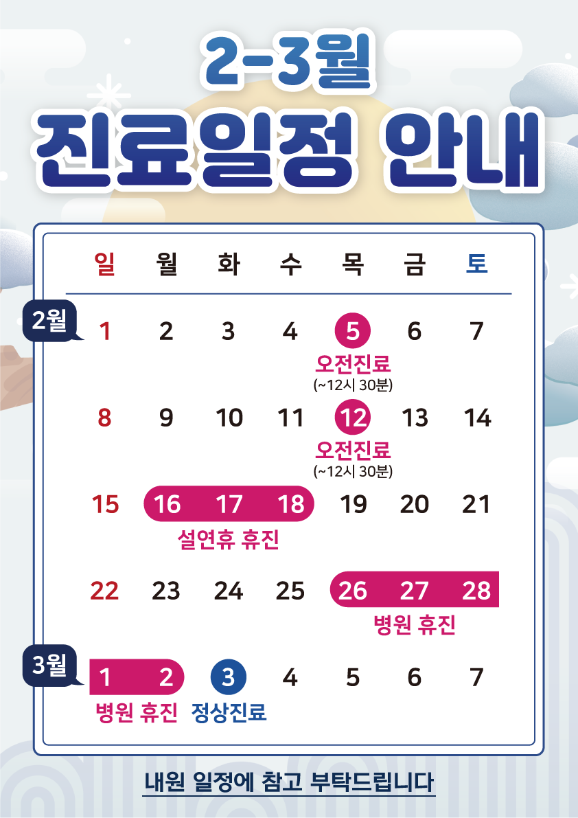 ※ 토요일은 점심시간 없이 진료합니다.